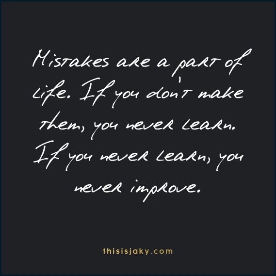 Mistakes are a part of life. If you don’t make them, you never learn. If you never learn, you never improve.