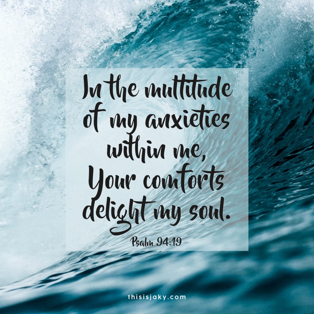 In the multitude of my anxieties within me, Your comforts delight my soul. -Psalm 94:14