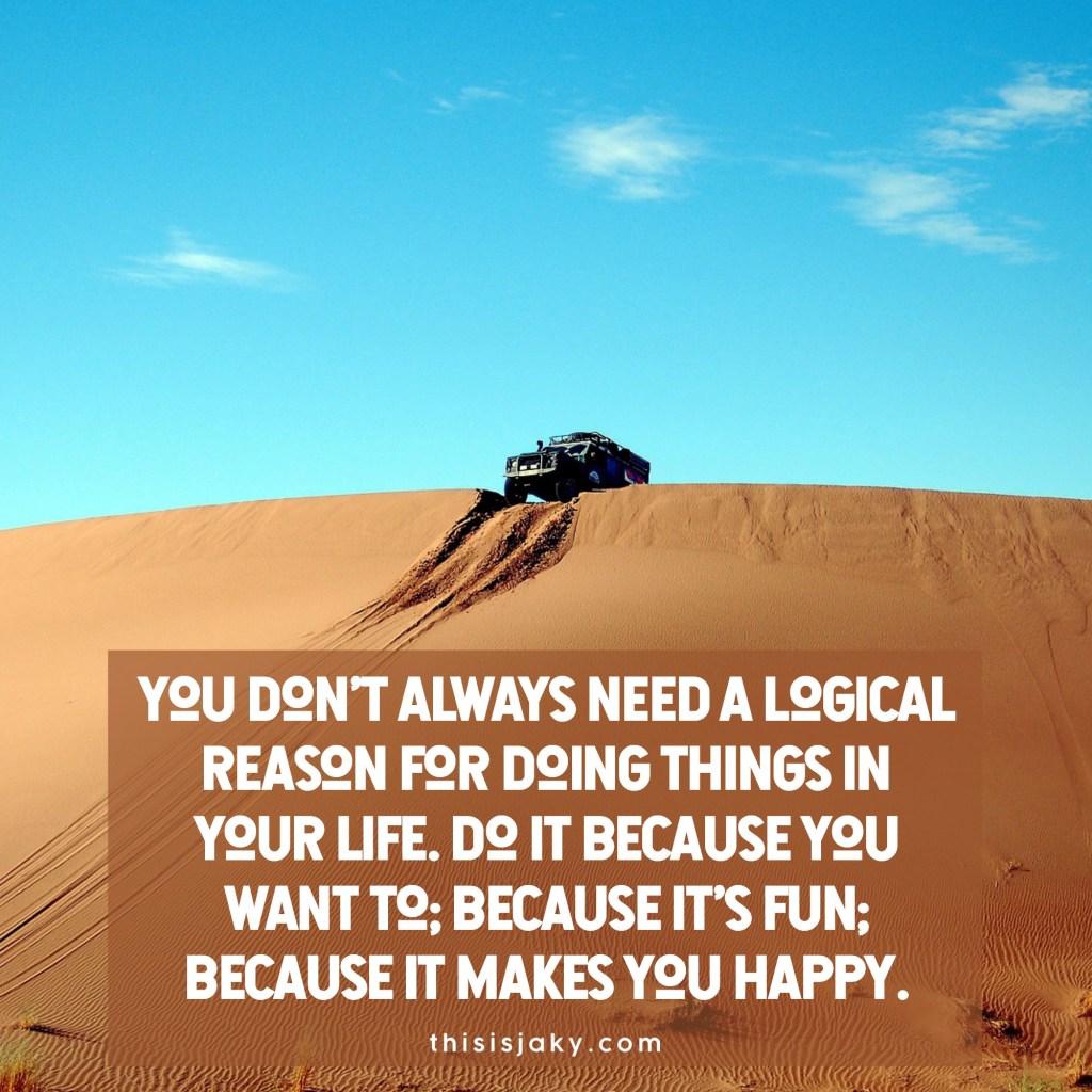 You don’t always need a logical reason for doing things in your life. Do it because you want to; because it’s fun; because it makes you happy.
