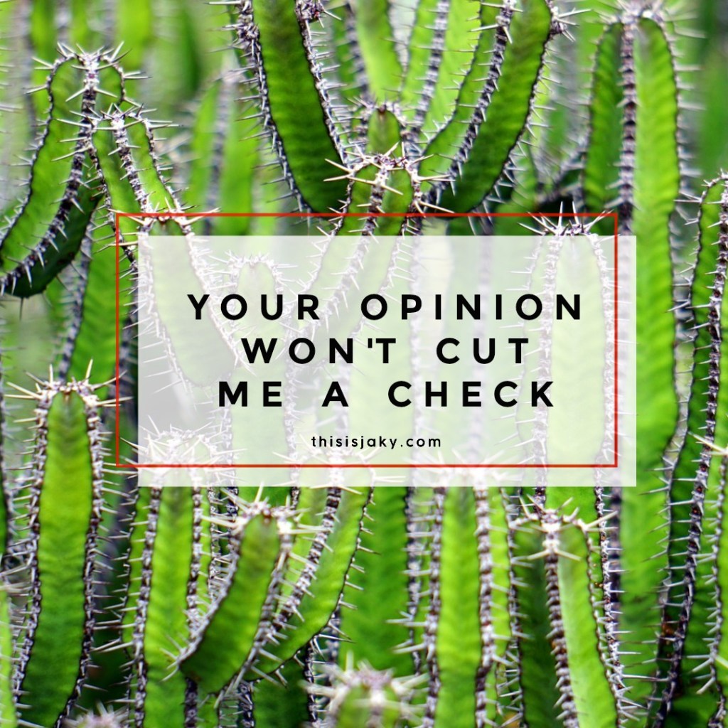 Your opinion won’t cut me a check.