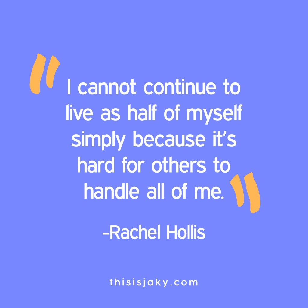 I cannot continue to live as half of myself simply because it’s hard for others to handle all of me. –Girl, Wash Your Face by Rachel Hollis