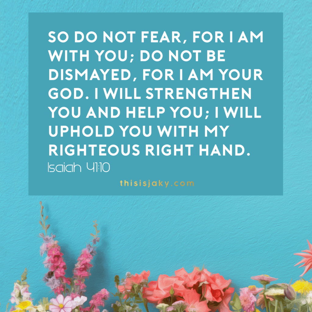 So do not fear, for I am with you; do not be dismayed, for I am your God. I will strengthen you and help you; I will uphold you with my righteous right hand. Isaiah 41:10